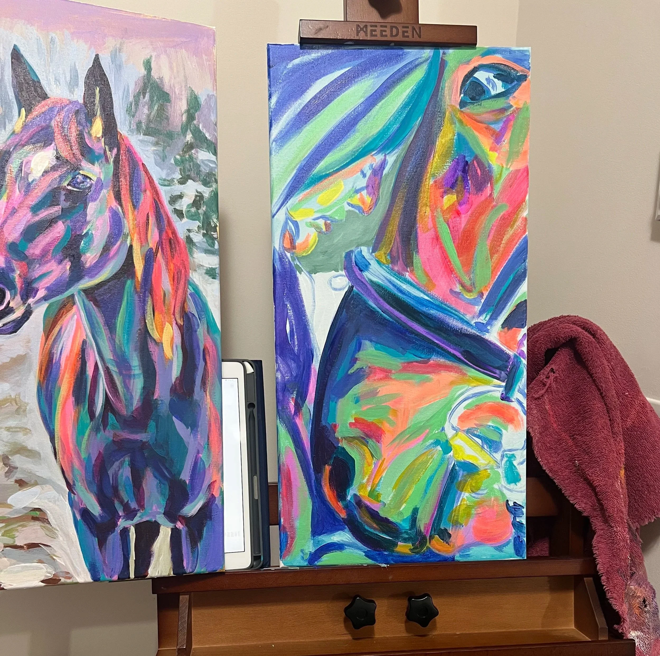 I started a series of horse paintings—something I’ve wanted to do for a long time. Horses have always been meaningful to me, and it felt like the right time to finally begin. It’s one of those things that keeps coming back to me, and I’m always thinking about where I want to take it next.
